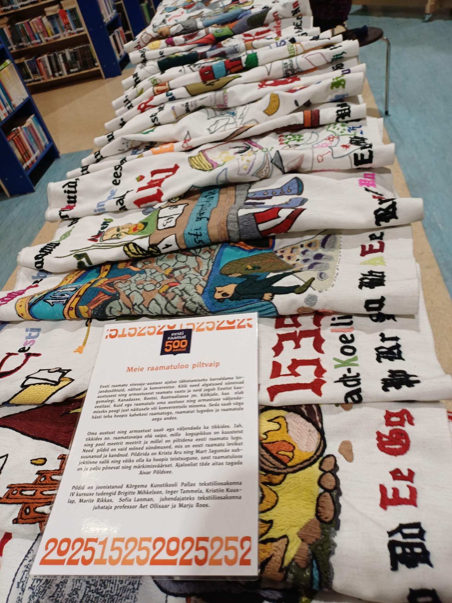 11. veebruaril alustati Eesti Raamatu Aasta raames Kõrgem Kunstikool Pallas raamatukogus Eesti raamatu loo piltvaiba tikkimist – peaaegu 17 meetrit kultuuri ja ajalugu