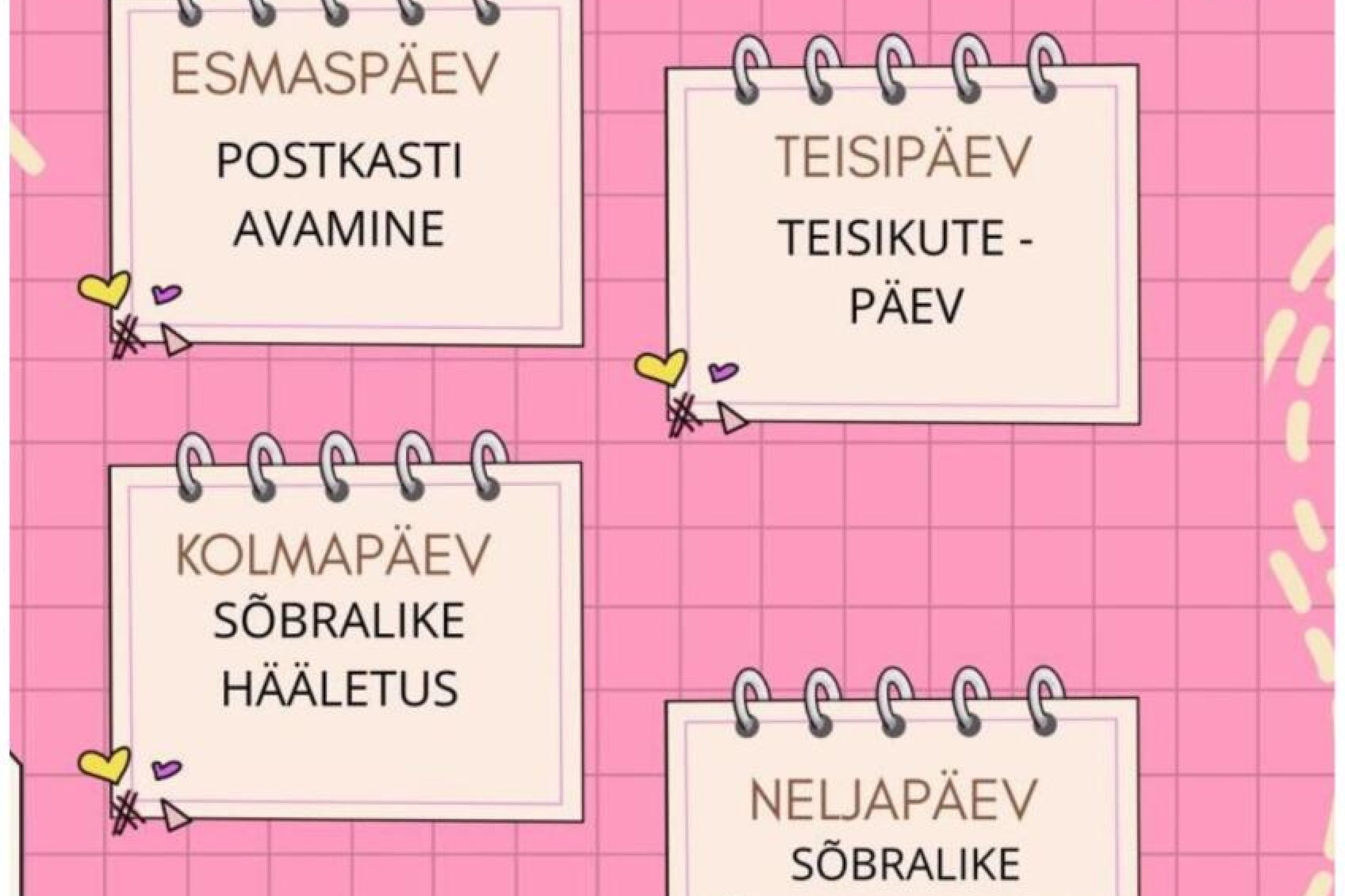 📚Kutsume 2026. aastal kooliteed alustavaid lapsi eelkooli! Loomise kuupäev 22.01.2026 Autor Maarja Kallis 🎉 Riidajas on haridust antud juba 192 aastat! Loomise kuupäev 28.11.2025 Autor Maarja Kallis Eesti Raamat 500 raames tikiti Valga Keskraamatukogus piltvaip Loomise kuupäev 28.11.2025 Autor Tiivi Rüütel 😎Stiilinädalal peletasime sügisväsimust Loomise kuupäev 16.11.2025 Autor Tiivi Rüütel Vaata rohkem